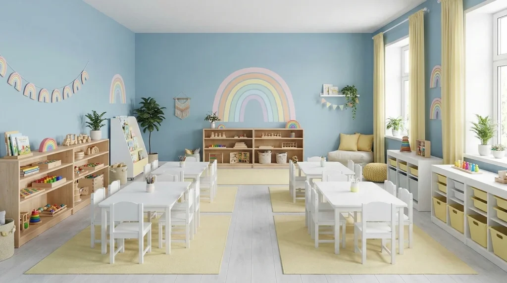 Classroom colors play an important role in shaping the atmosphere of a preschool learning environment. The right combination of soft base tones and carefully chosen accents can help children feel comfortable, focused, and ready to explore. When colors are balanced and intentional, classrooms become more organized and supportive for daily learning activities.
