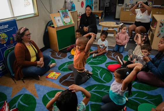 A designated rug area provides a consistent gathering point. Children recognize it. They move toward it with less hesitation. The physical cue reduces the need for repeated instruction.