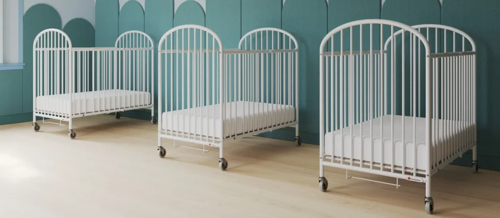 Daycare cribs are designed for infants and younger children who need a more secure sleep space. They are commonly used in infant rooms and early care programs.