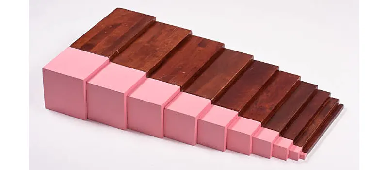 Different manufacturers may use slightly different pink tones, but the key requirement is uniformity within the set. As long as all cubes share the same color, the sensorial purpose remains intact. - Why does the Montessori Pink Tower have ten cubes and not more or fewer?