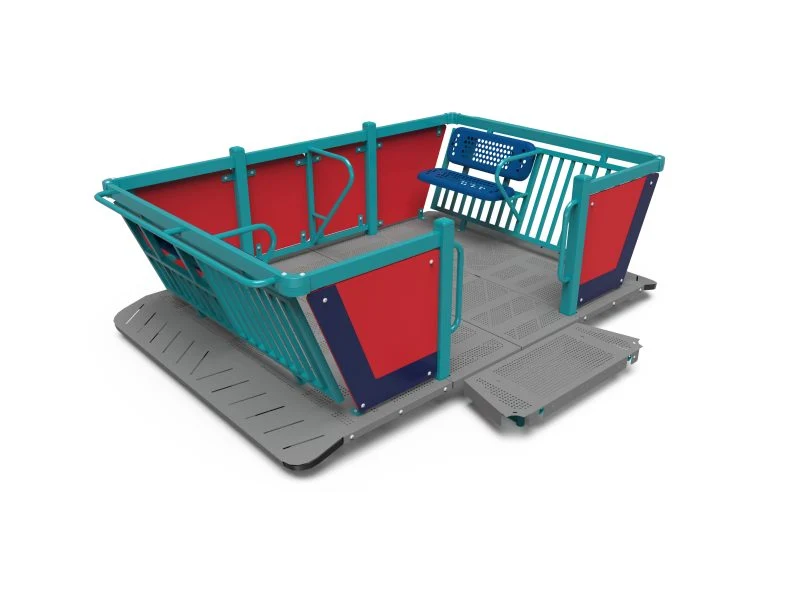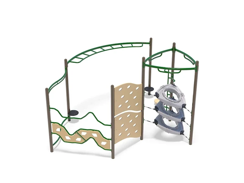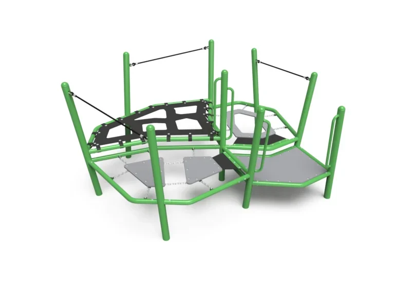 Platform and deck surfaces are selected to improve durability, slip resistance, and user comfort in outdoor environments. These materials help reduce heat buildup under sun exposure while providing a more stable and reliable play surface for high-frequency use.