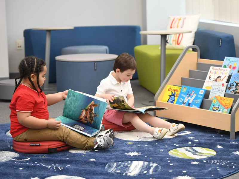 Preschool classrooms are often full of movement, noise, and active play, so children also need a quieter area where they can slow down and focus. A library center provides a peaceful space for quiet reading, reflection, and imagination without the distractions of screens or busy classroom activity. This kind of environment supports concentration, emotional regulation, and helps children feel secure during transitions or independent learning time.