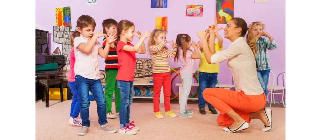 This rhythmic game strengthens children’s memory, concentration, and listening skills while encouraging them to recognize and repeat sound patterns. The teacher starts with a simple clapping pattern, and children listen closely to copy it. As they master each pattern, the challenge can be increased, making it both fun and developmentally enriching.