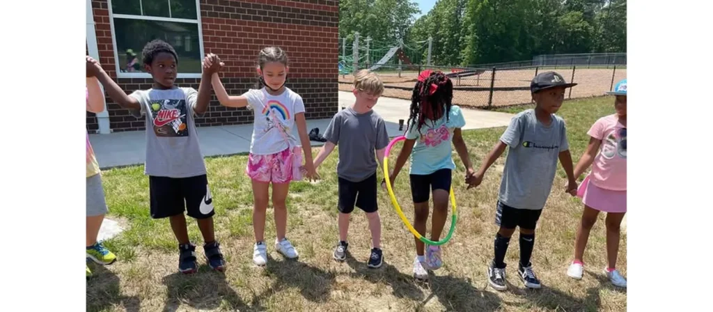- Explain that the goal is to move the hoop all the way around the circle without letting go of each other’s hands.