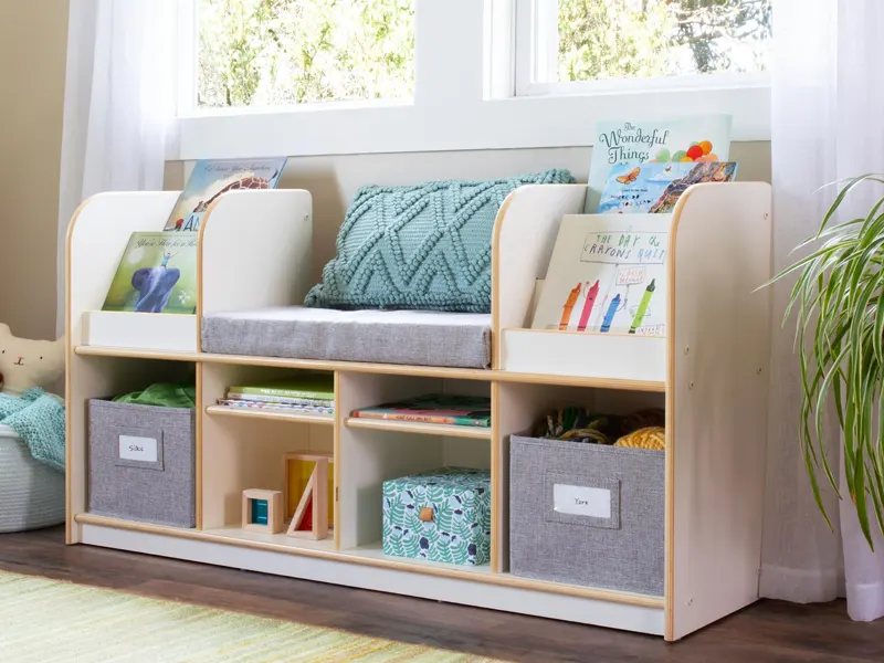 - Read-A-Round Circle Bench: Place a circle storage bench in the center of the room instead of against a wall. Keep books accessible from both sides so multiple children can use them together. This layout works beautifully in classrooms or play areas.
