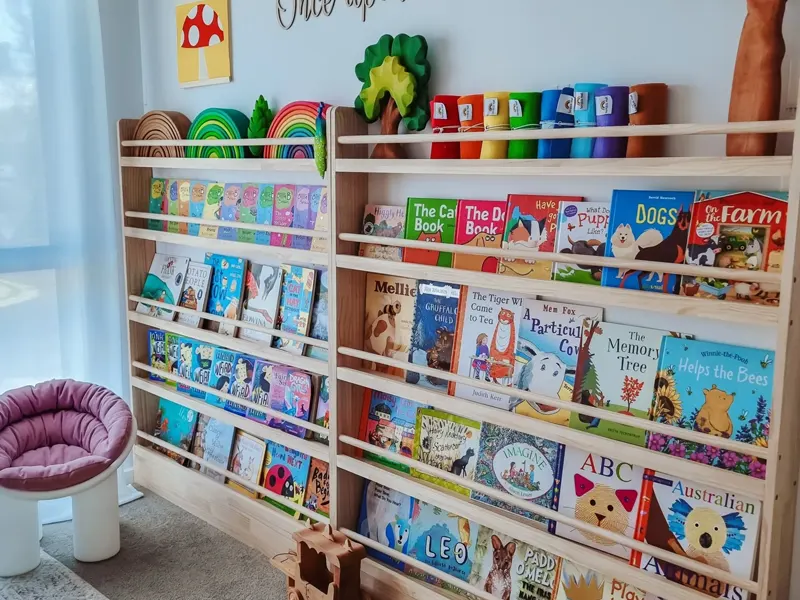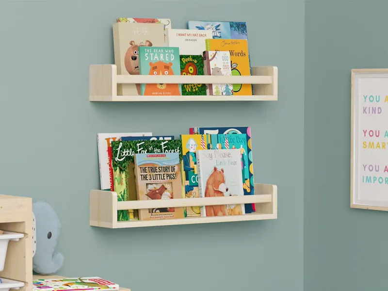 When books face outward, their colorful covers instantly capture a child’s curiosity. Front-facing display racks turn ordinary walls into mini libraries that invite little readers to explore. They are perfect for classrooms, reading corners, or playrooms where you want to highlight certain titles or themes. This display method encourages children to make reading choices visually, which strengthens both independence and interest.
