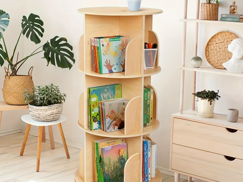 A revolving book carousel is a space-efficient and eye-catching solution that allows books to be stored in a full 360-degree format. It provides multiple layers of storage, making it easy for children to spin and select their favorite titles from any side. This type of storage encourages independence and exploration while saving wall and floor space. Its compact footprint makes it perfect for corners, reading nooks, or classrooms with limited space.