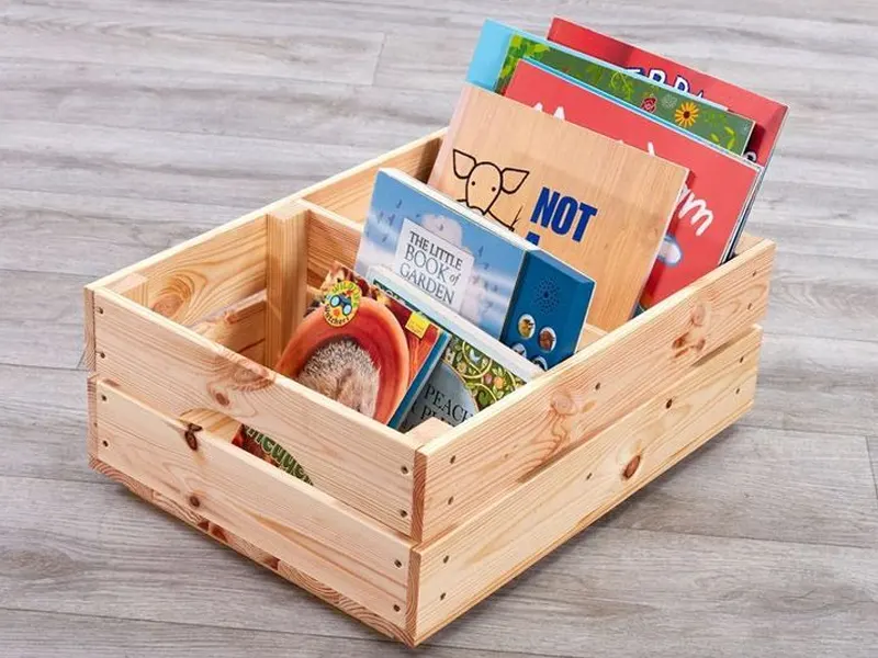 Wooden crates offer a rustic, versatile, and eco-friendly way to store children’s books. Their open structure provides easy visibility and accessibility, while their sturdy material ensures durability even in active play environments. They can be stacked, painted, or rearranged to fit different spaces, making them a favorite choice for both home and classroom reading corners.